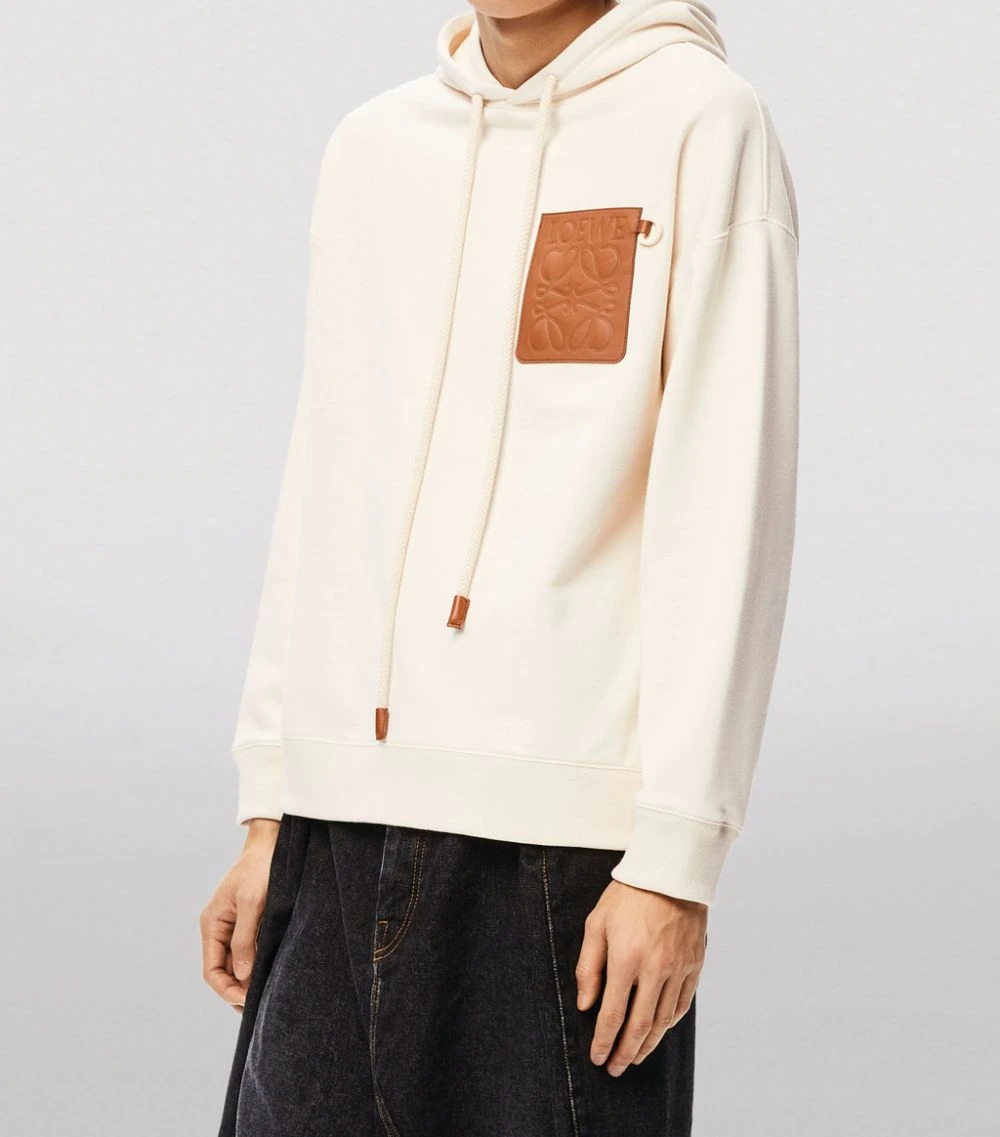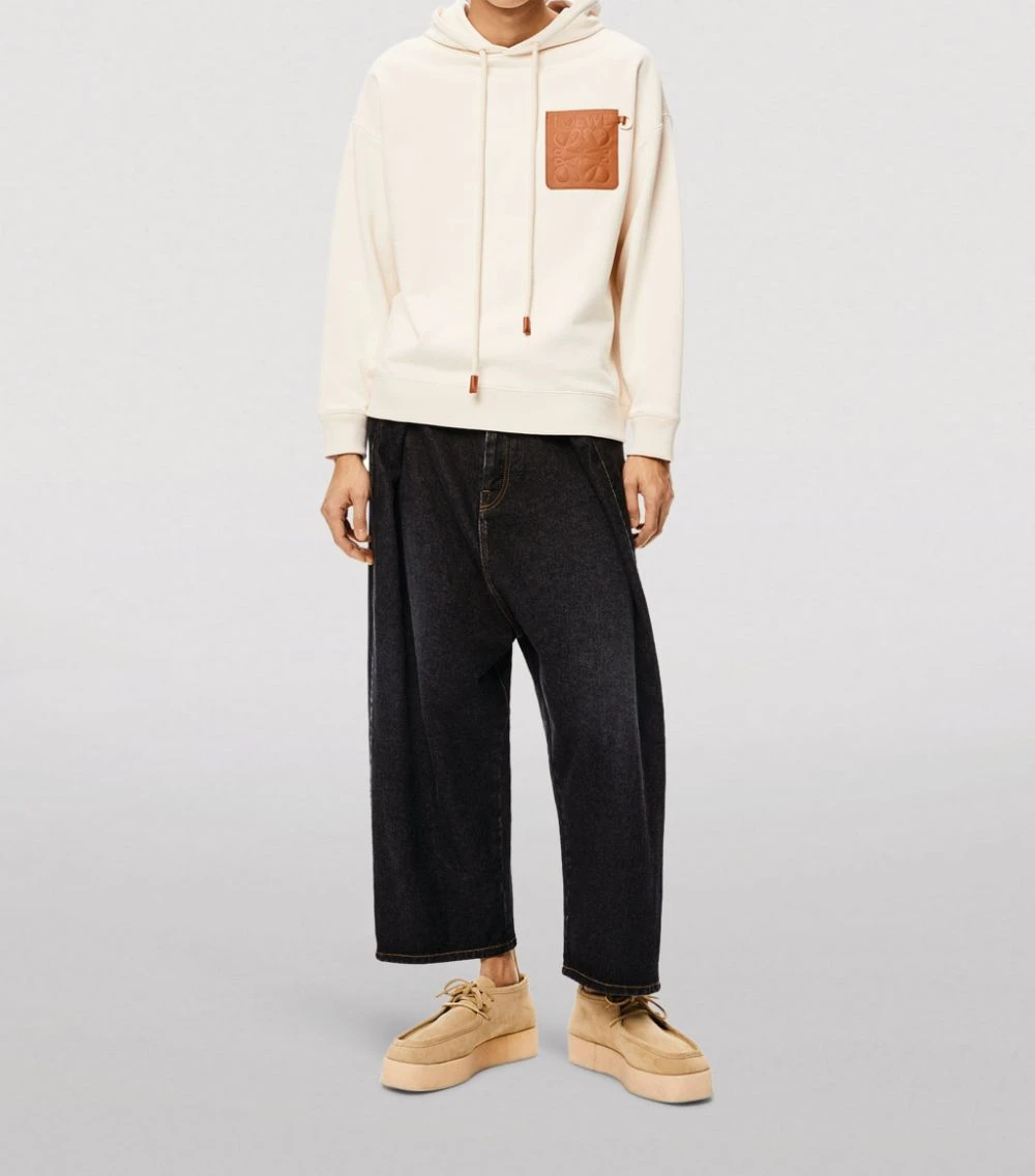 When design duo M/M Paris were tasked with redefining LOEWE’s famous Anagram logo, they discovered that its original shape was inspired by branding irons used to mark cattle and leather skins – the House references that history upon the relaxed silhouette of this hoodie. The athletic piece is elevated with a leather patch pocket stamped with the iconic motif, meaning you’ll be earning both style and comfort points every time you reach for it.