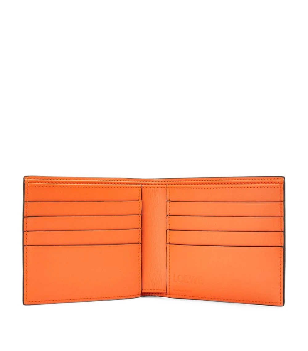 In a two-tone effect, LOEWE’s logo can be seen placed across the front of this bifold wallet – an accessory rendered in a combination of smooth and grained calfskin for a celebration of texture. The sleek frame easily slides into pockets and bags, while bearing enough space for all your monetary essentials.