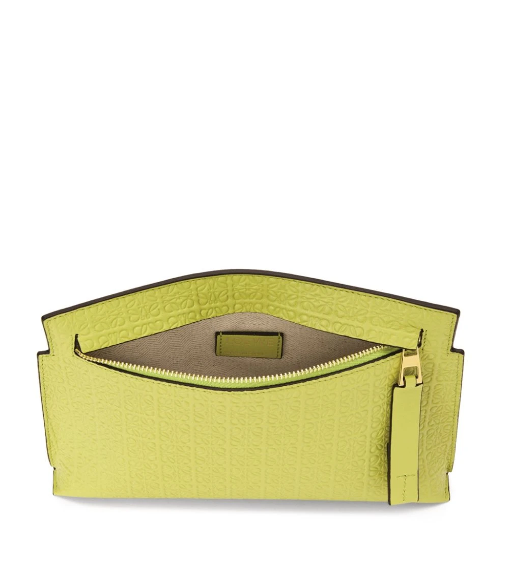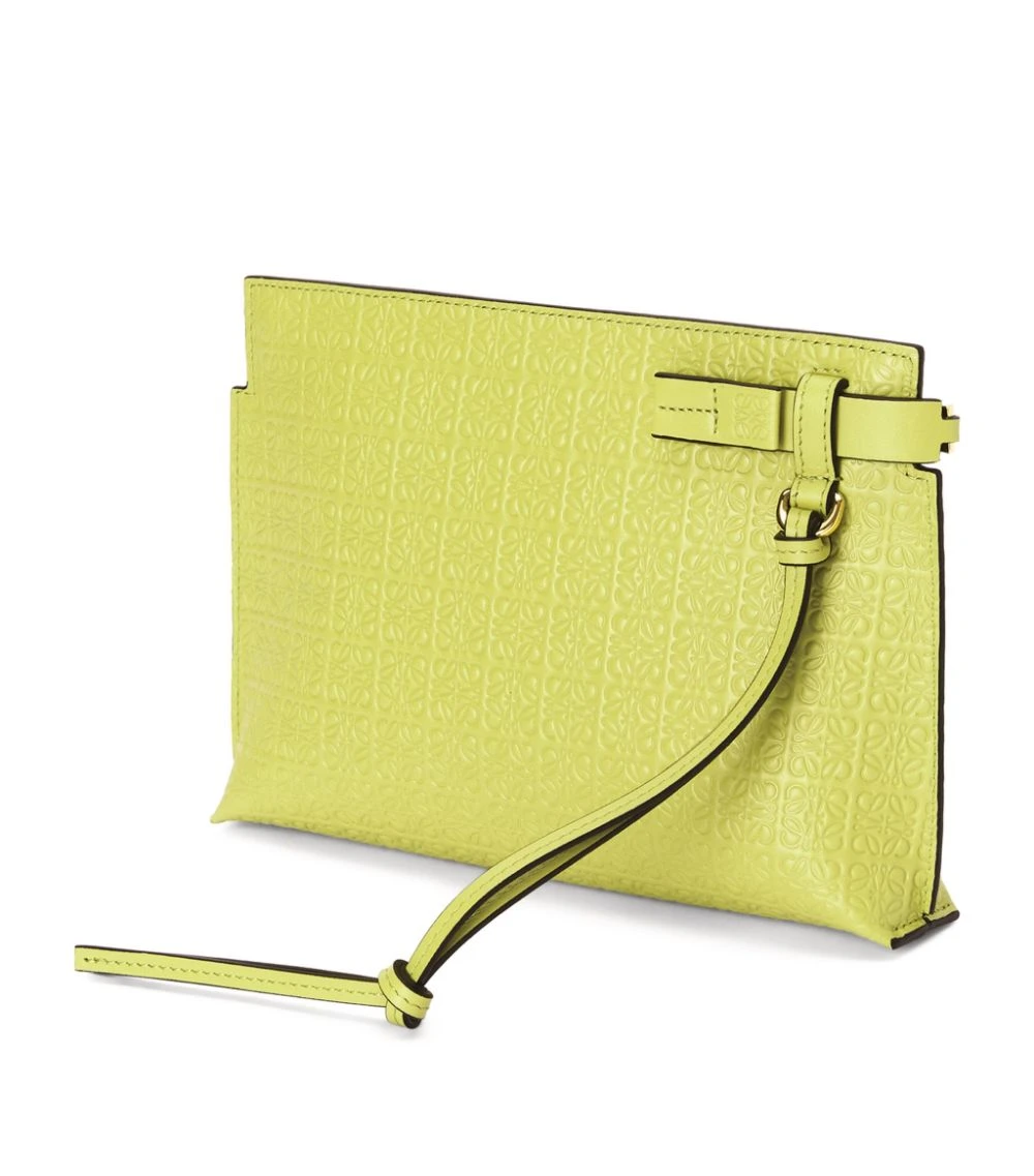 Every season, LOEWE spotlights its inimitable Anagram logo in many variations. Here, the label decides to cover this T pouch with a quiet yet distinguished repeat pattern, which is an exceptional display of talent from the brand’s leather specialists. Easily carry the style under the arm or looped around the wrist via the strap.
