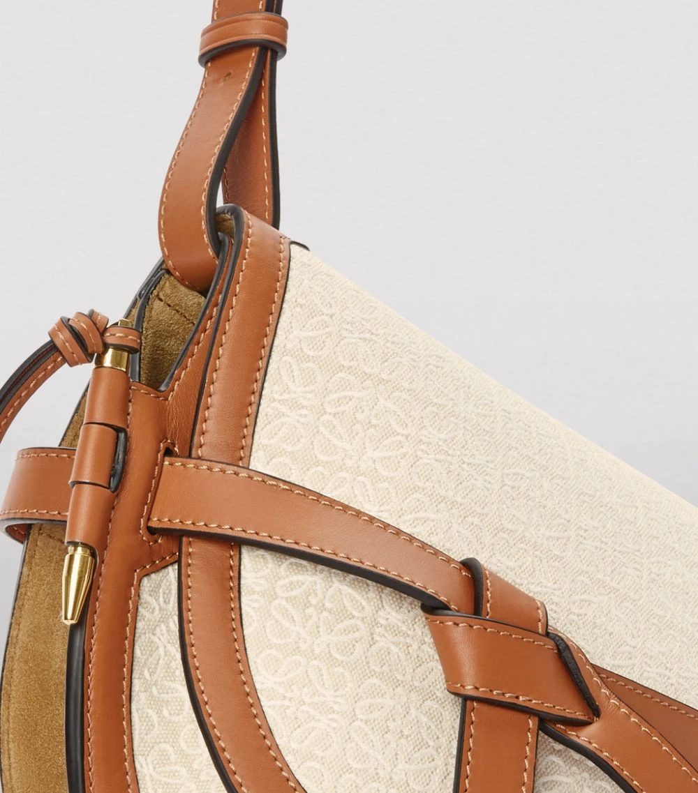 Owing its name to the side-latched pin and knotted front belt closure, the coveted LOEWE Gate bag reimagines timeless functionality with a contemporary feel. The saddle-shaped, cross-body style is crafted in canvas, printed with the iconic Anagram motif and detailed with sleek and supple leather trims.