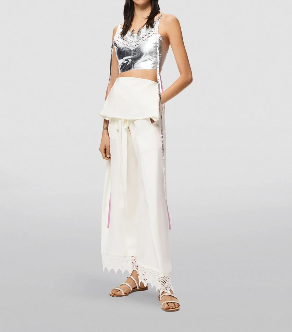 Hand-picked from its collection with bohemian boutique Paula’s Ibiza, these belted trousers from LOEWE capture the carefree spirit that characterised the White Isle in the ‘70s and ‘80s. Rendered in a silk-cotton blend, the pair finds inspiration in the wardrobes of avid yogis – something that materialises in the voluminous profile and wide-leg silhouette. Wear yours as the label intended: barefoot on golden sands with a yoga mat in hand.